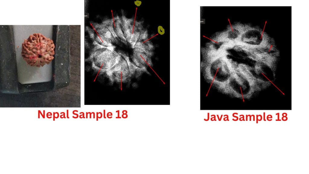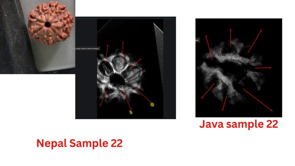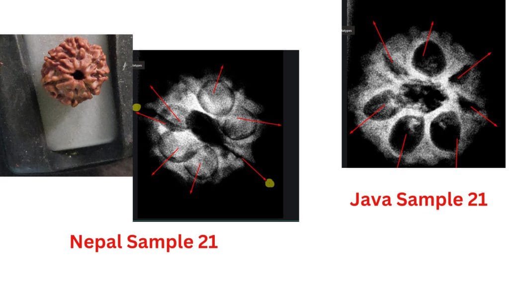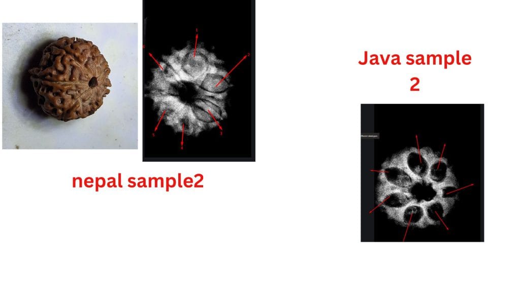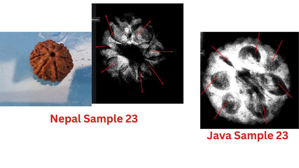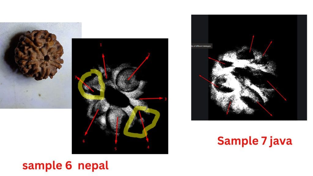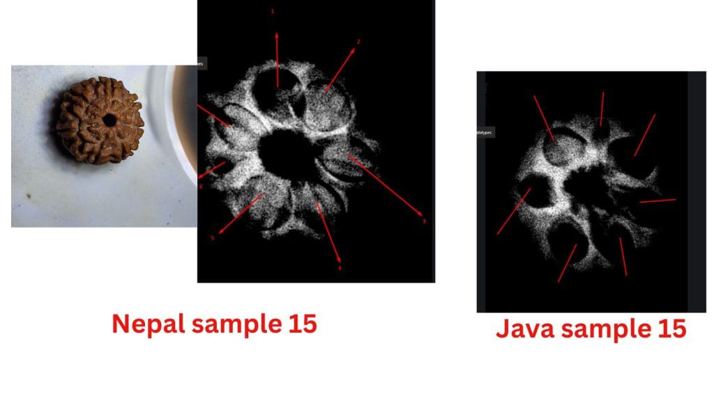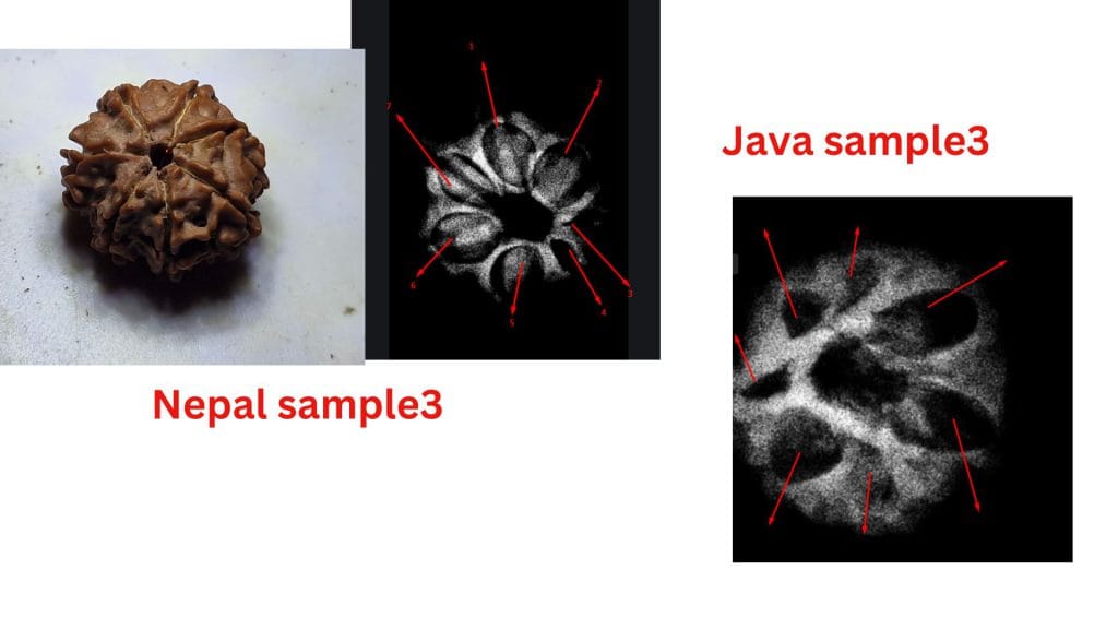 At the heart of this debate are the structural differences observed in these beads from the two regions. The study highlights how the Nepalese samples often exhibit less clearly defined compartments, leading to questions about their maturity or development. In contrast, the Java samples consistently show well-defined compartments and visible seeds, aligning with the botanical expectations of a fully developed Seven Mukhi Rudraksha.