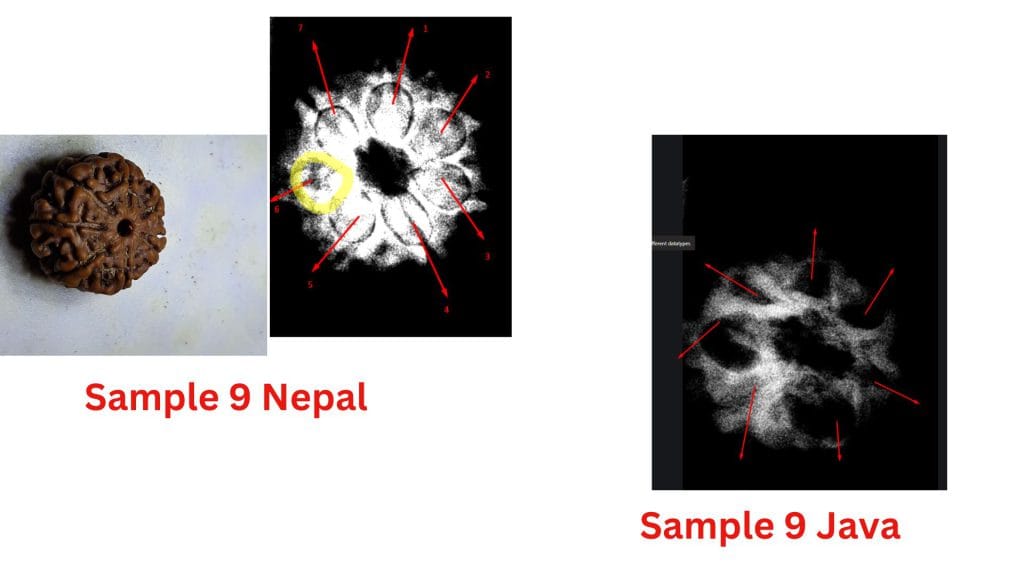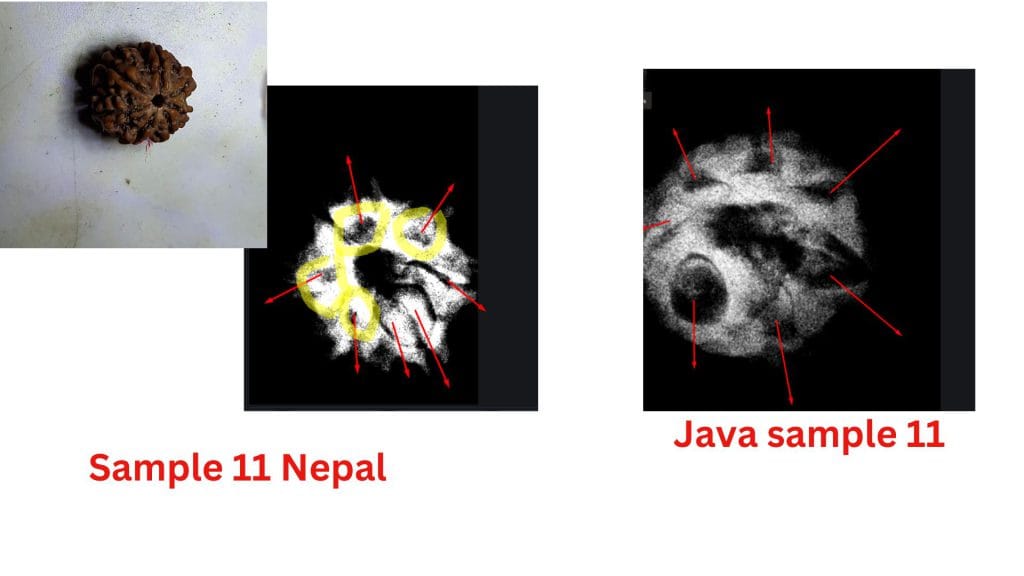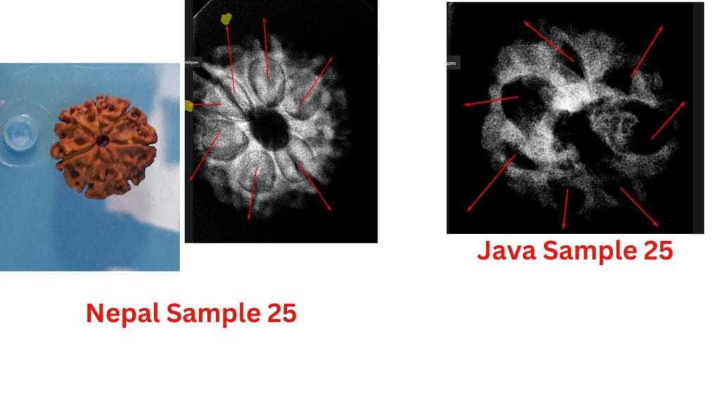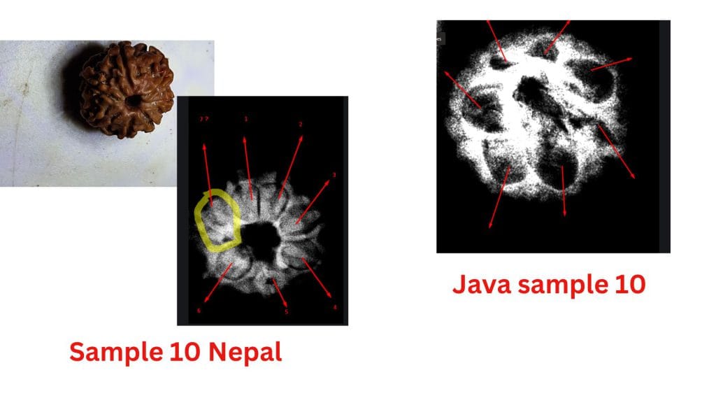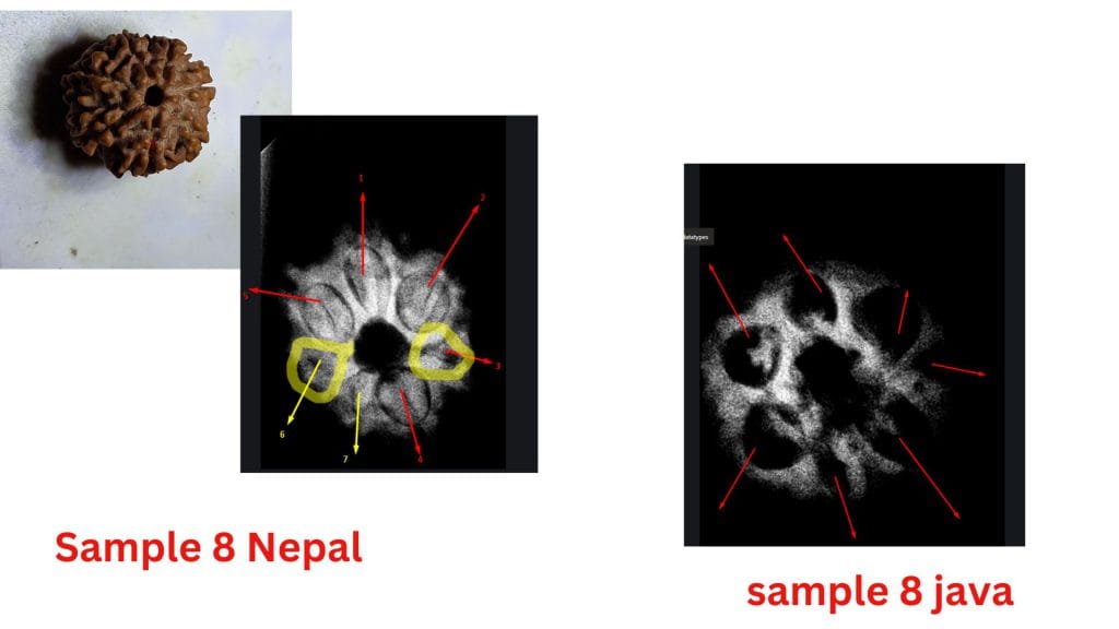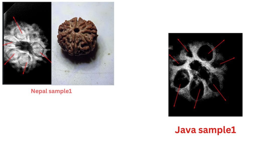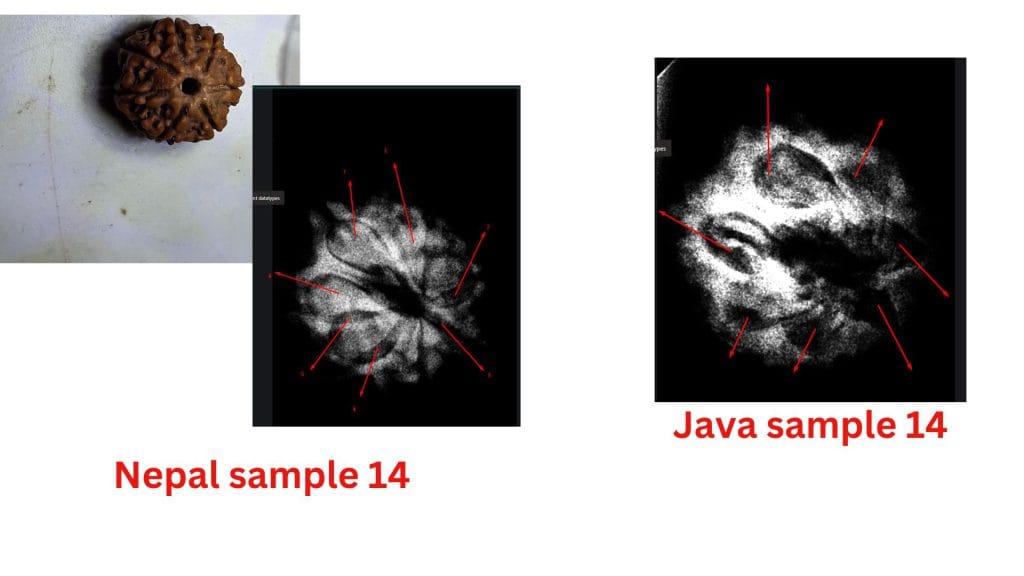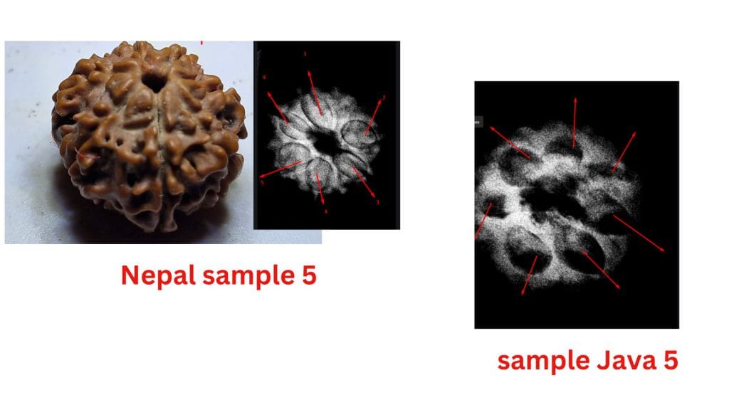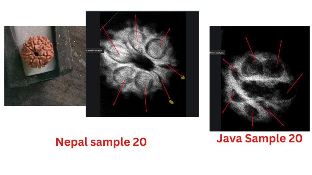 At the heart of this debate are the structural differences observed in these beads from the two regions. The study highlights how the Nepalese samples often exhibit less clearly defined compartments, leading to questions about their maturity or development. In contrast, the Java samples consistently show well-defined compartments and visible seeds, aligning with the botanical expectations of a fully developed Seven Mukhi Rudraksha.